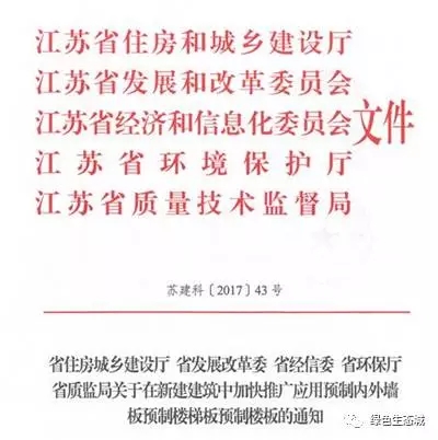 In February 14, 2017, Jiangsu Province Department of housing and urban rural construction, Jiangsu provincial development and Reform Commission, Jiangsu Province Economic and Information Technology Commission, Jiangsu provincial Environmental Protection Bureau, Jiangsu Province Bureau of quality and technical supervision and other five departments jointly issued the "notice" on accelerating the promotion and application of prefabricated wall board prefabricated precast floor in the new building in Jiangsu. As the first in the "three" introduced to promote the application of the policy of the provinces.